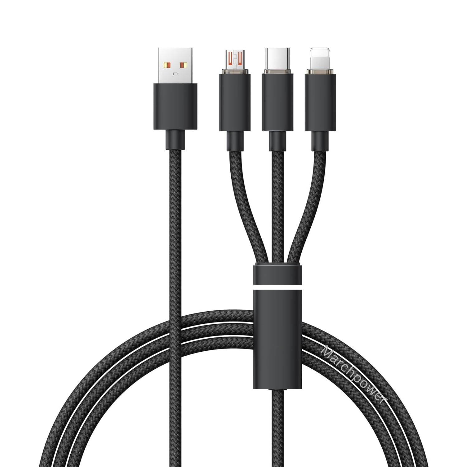 Alitayee 3 in 1 Multi Charging Cable with USB to Micro, USB Type C, Light-ning Pin, Compatible with Oppo, Vivo, Xiaomi, Samsung, iPhone, iPad Pro & Car Charging, 1 M, by Marchpower.